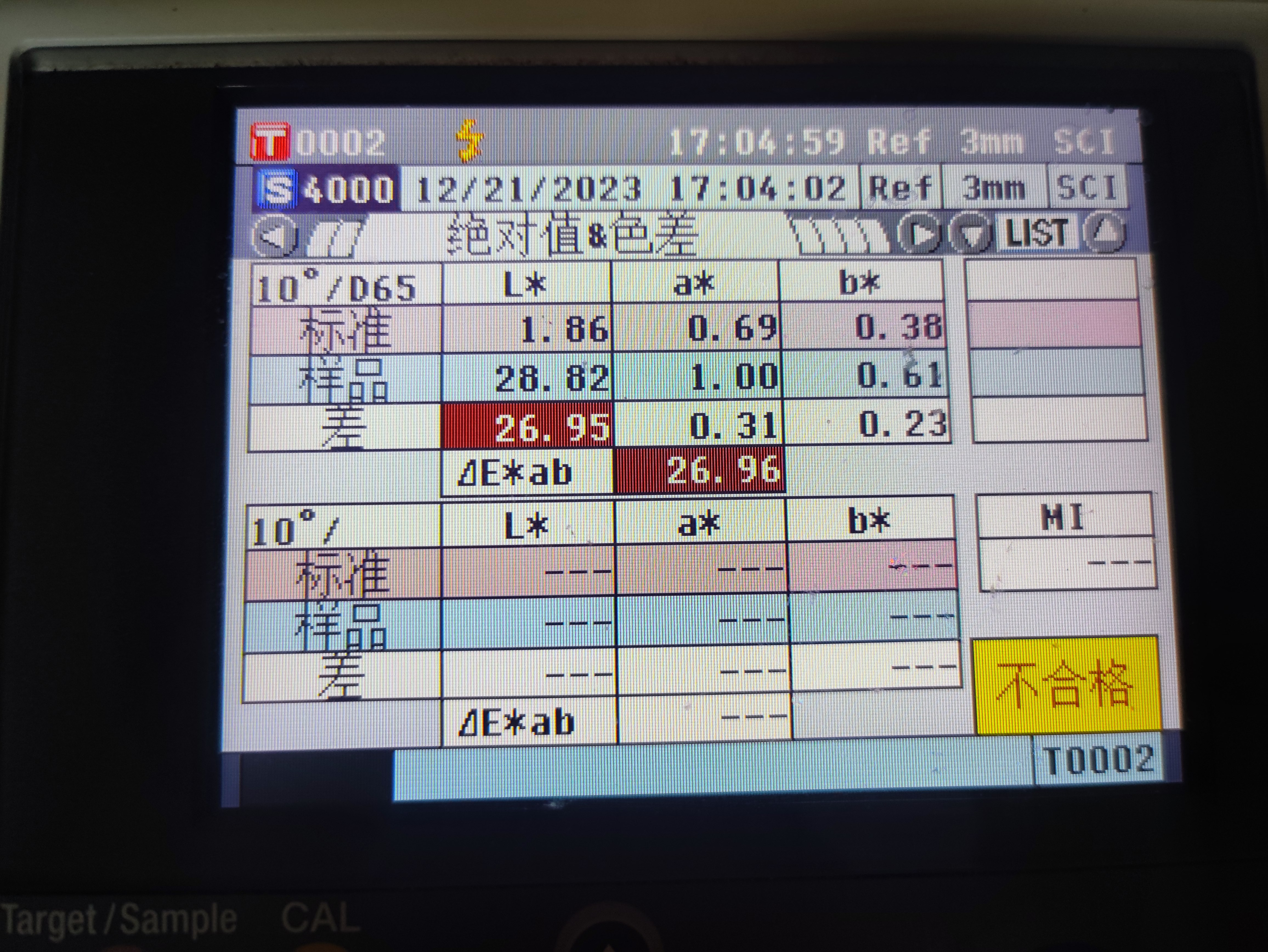 △b = b样品-b标准(黄/蓝差异)