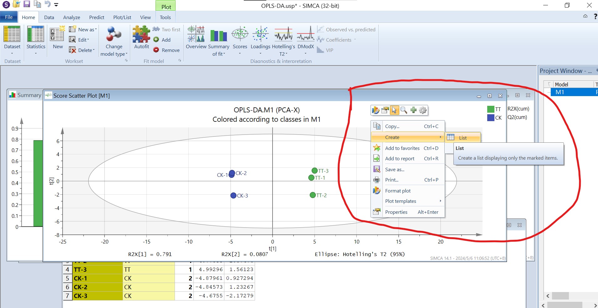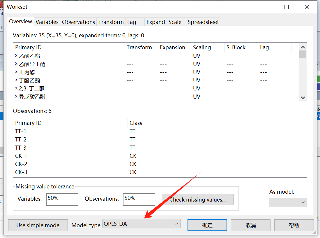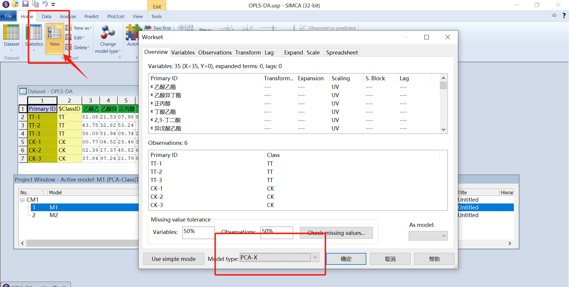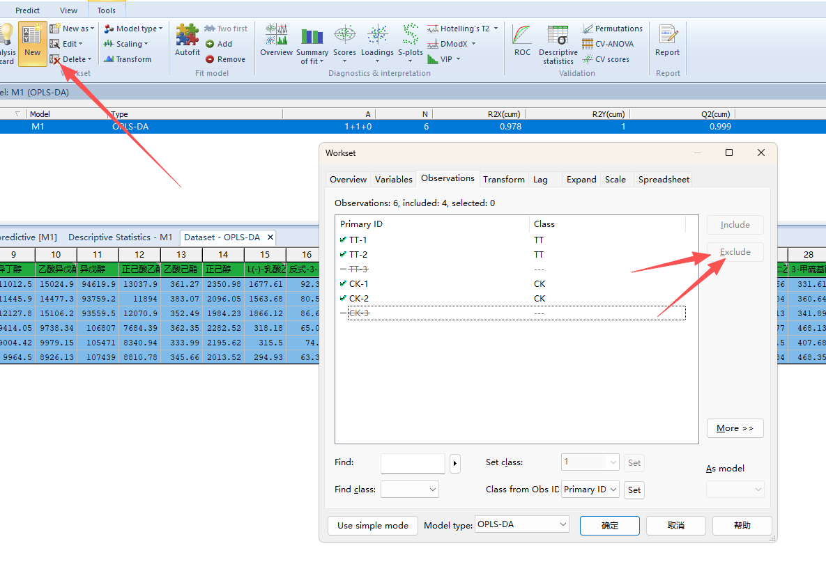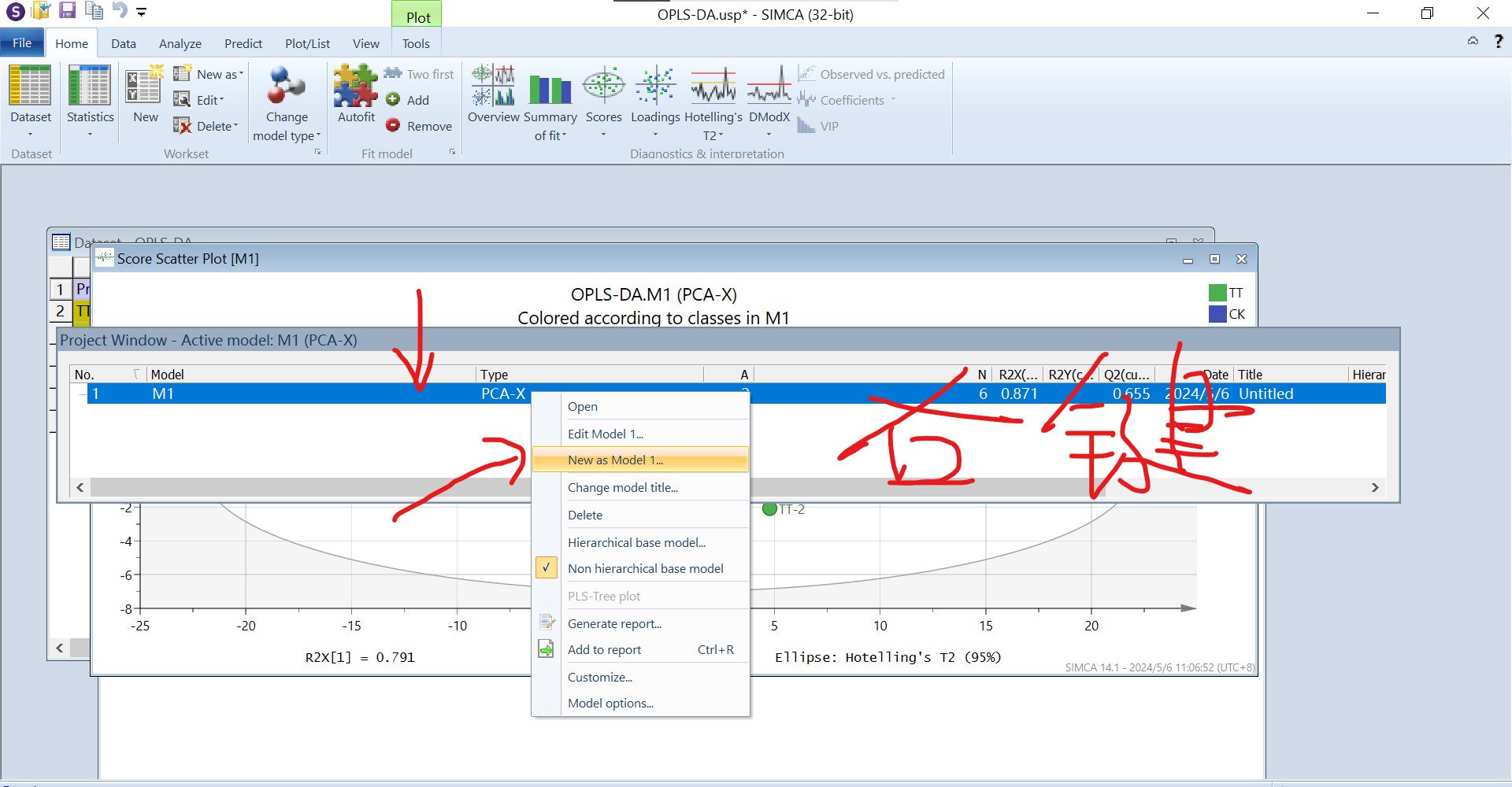 点击M1,右键选择“new as model 1”我们开始进行OPLS-DA、PLS-DA分析等操作