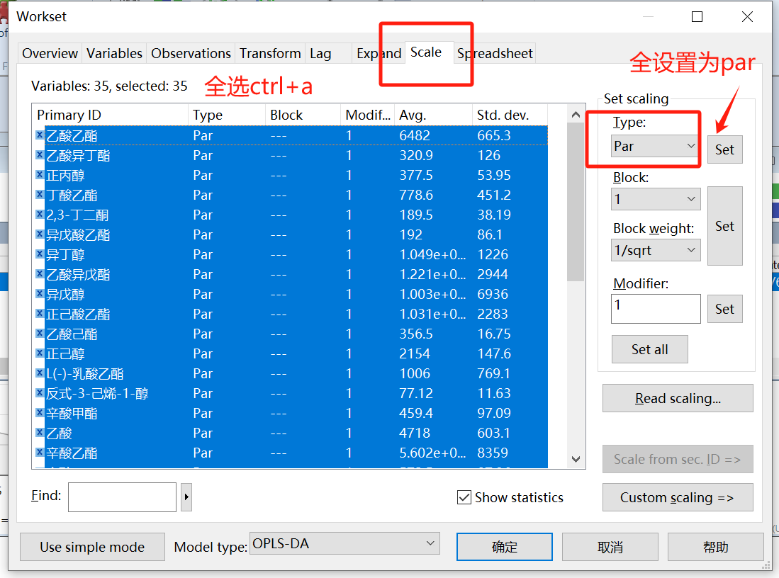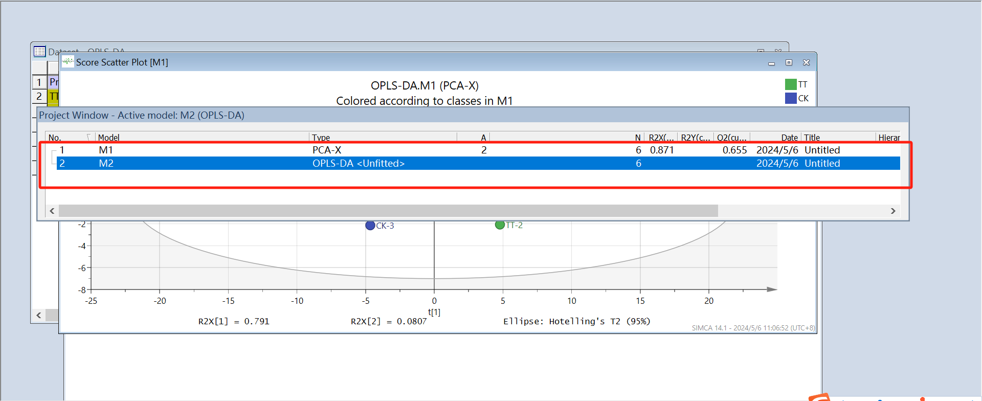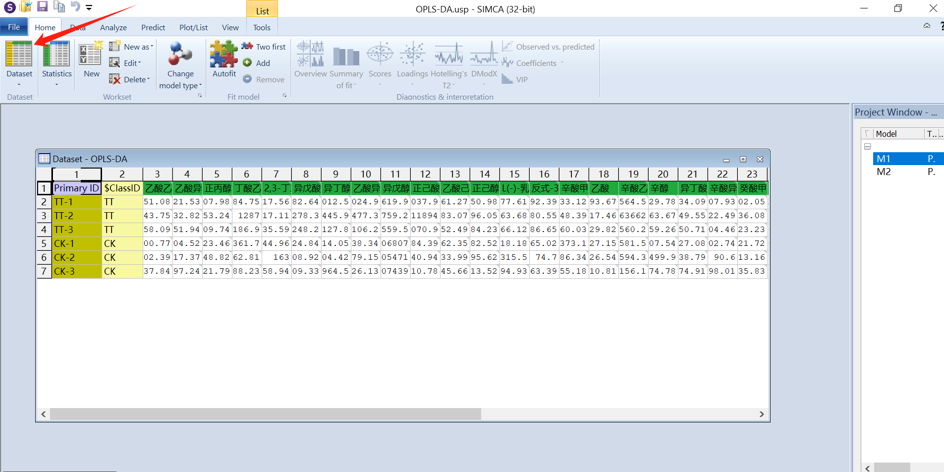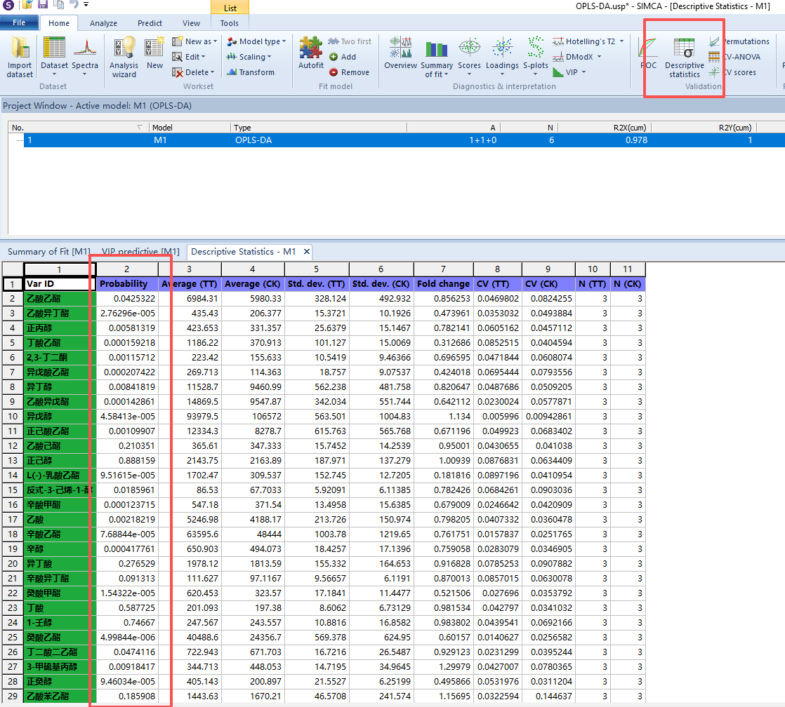 正交偏最小二乘判别分析(Orthogonal PLS-DA,OPLS-DA )是一种有监督的判别分析方法,是多变量统计分析方法,常用于代谢组学分析。本文详细记录了使用SMICA14.1软件进行OPLS-DA分析的图文步骤,希望能对初学者能有所帮助。视频学习可以参考b站论文讲解(香气物质、内含物质看这里)与SIMCA如何做OPLS-DA分析和Simca软件PCA OPLS-DA功能使用教程。