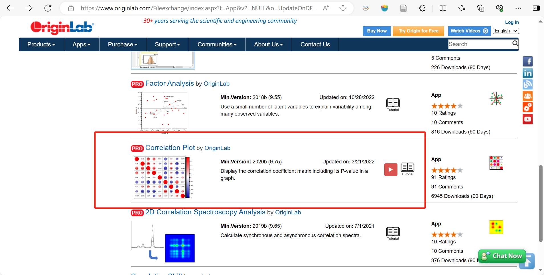 下面介绍origin如何绘制相关性热图,首先去官网下载一个插件Corelation Plot ,链接直达Origin File Exchange (originlab.com),下载完直接拖拽到origin到app那一个区域就好了。
