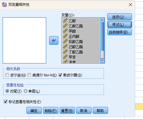 首先将数据导入到spss中,点击“分析“→”相关“→“双变量”,选中所有变量,勾选斯皮尔曼,确定即得到所有变量的相关性分析数据,再将数据复制到excel中,只保留相关性系数的数据。