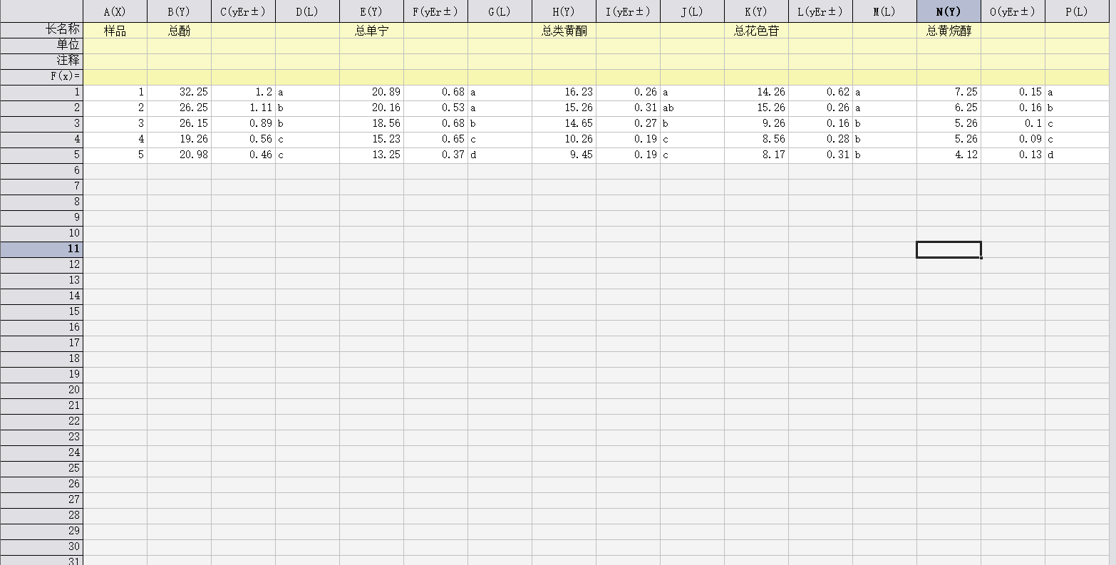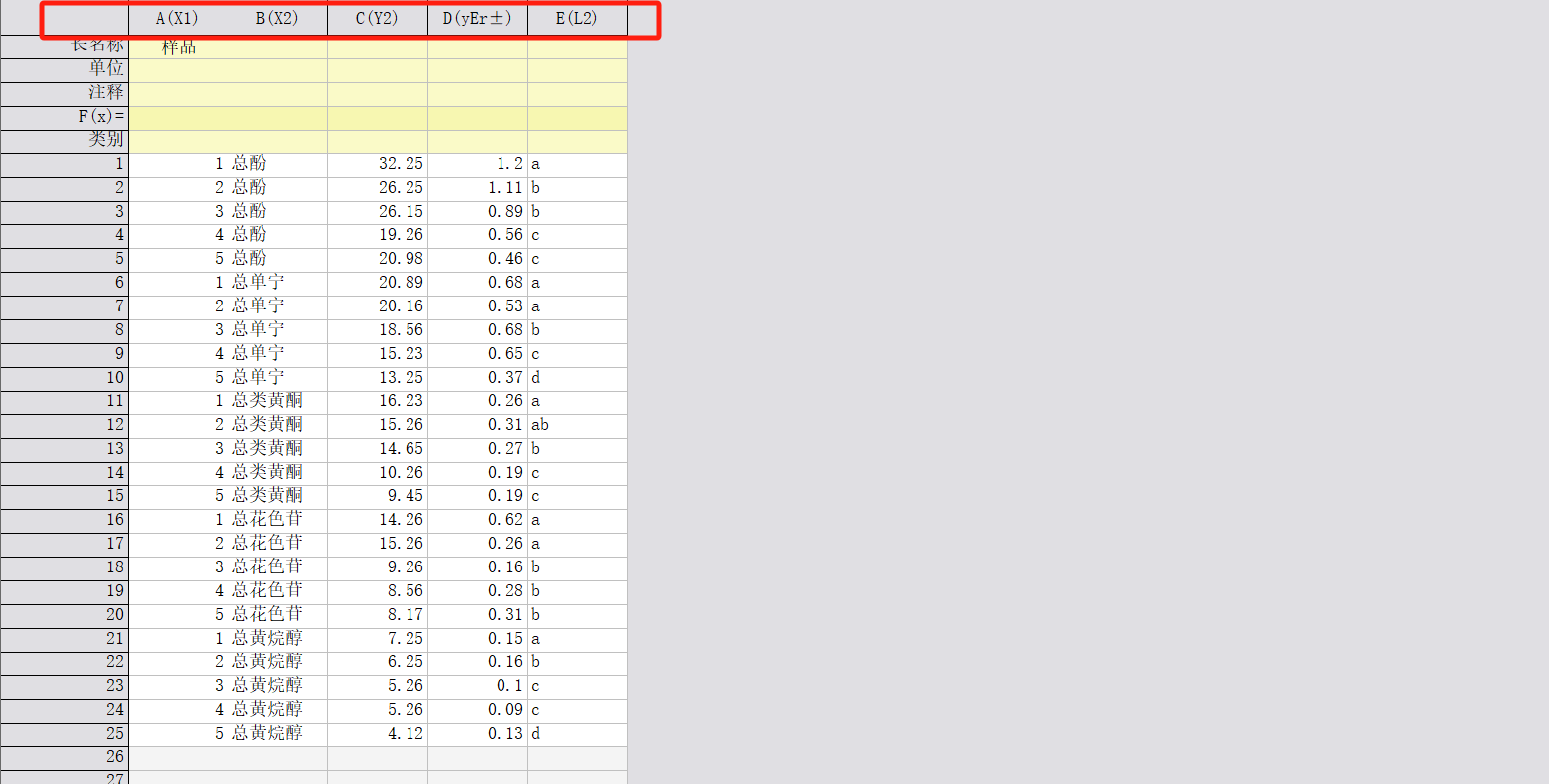这里的显著性标记没有显示,需要我们手动到刚才的输出数据表中添加新列,并将显著性字母标记结果复制过去,并启用标签,标签形式选择我们刚刚新添加的柱子名称,稍微美化后就能