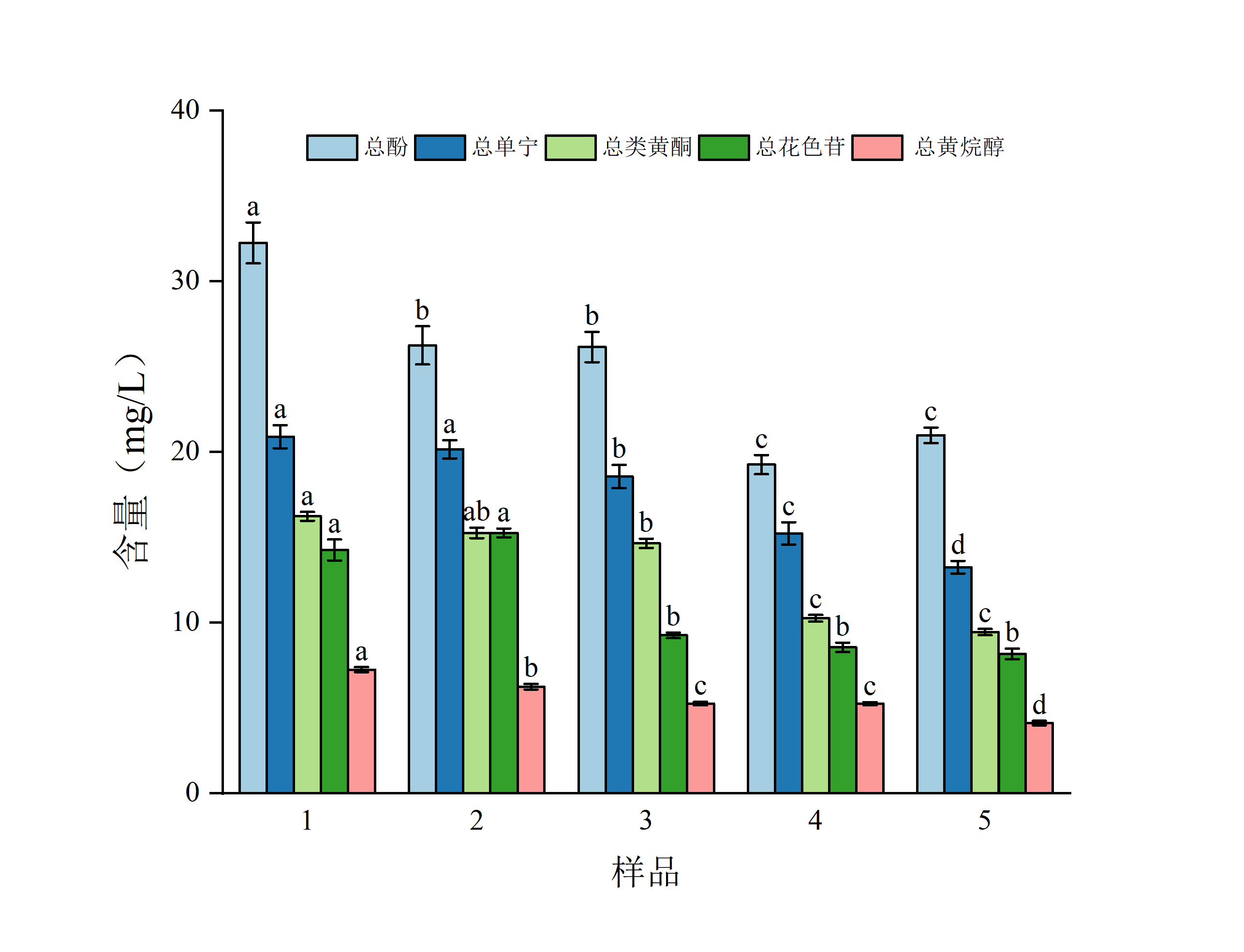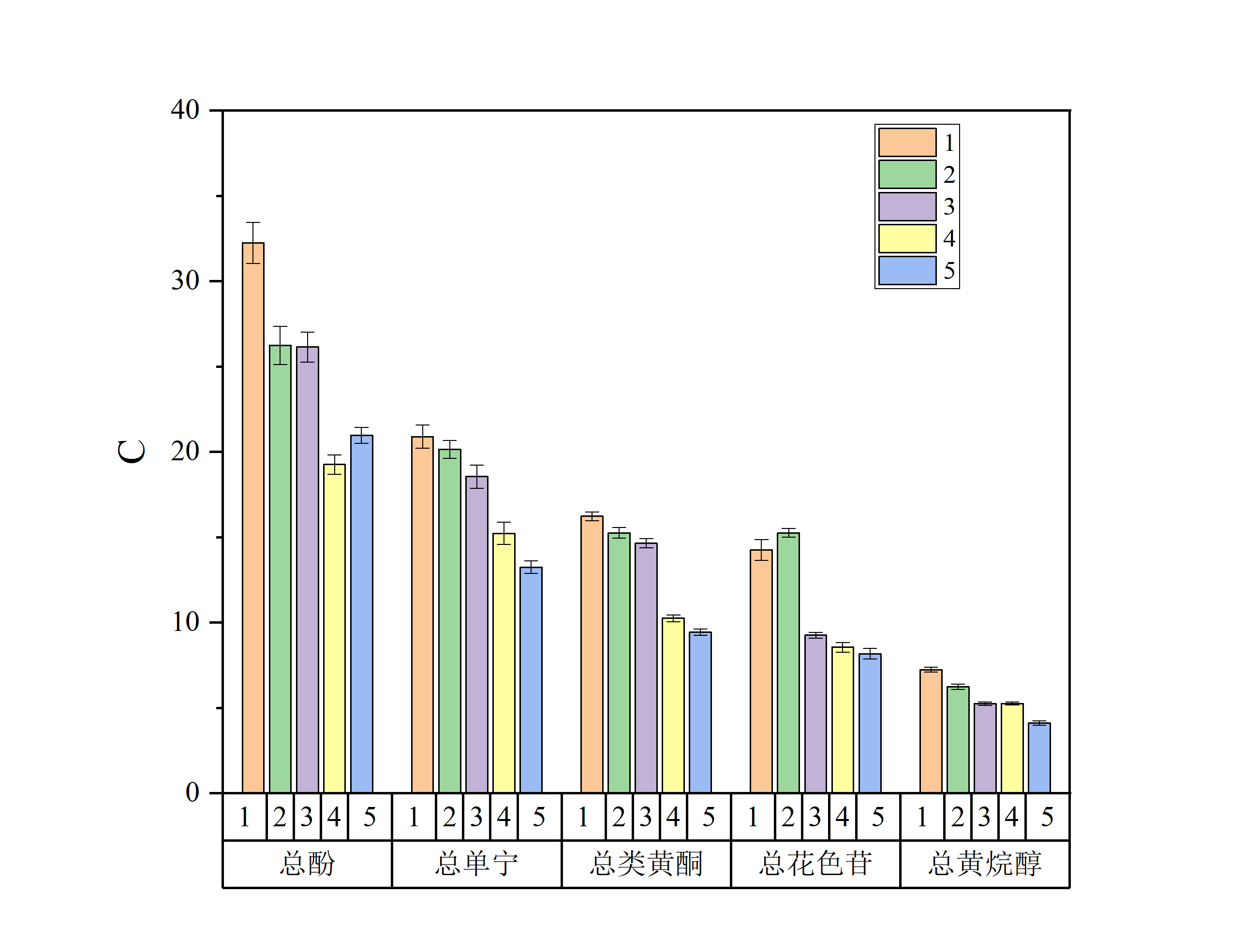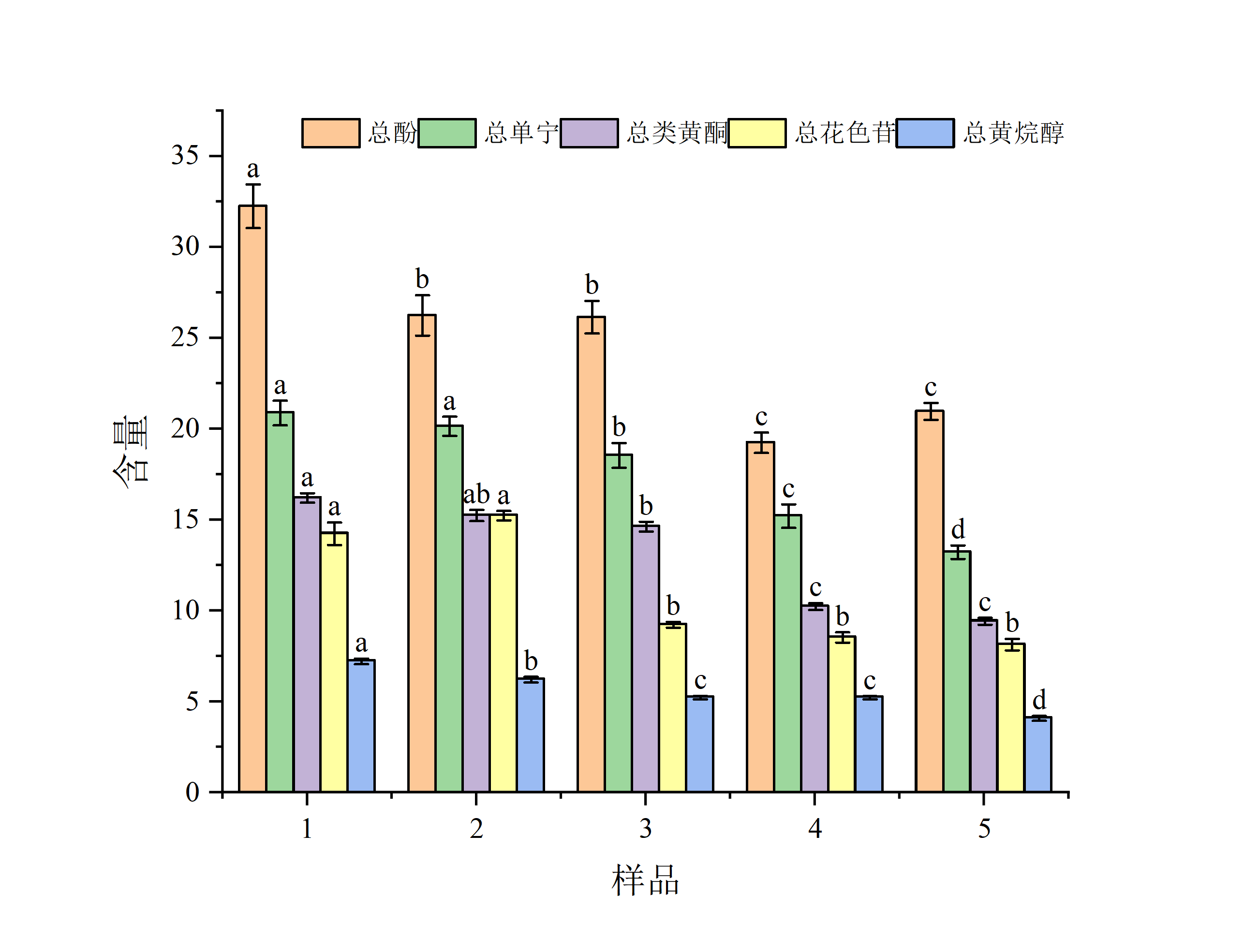 这是一般的柱状图,对样品进行了分组,侧重于表现同一组内的各个指标变化差异,但是不容易直观看出同一指标的不同组件差异。