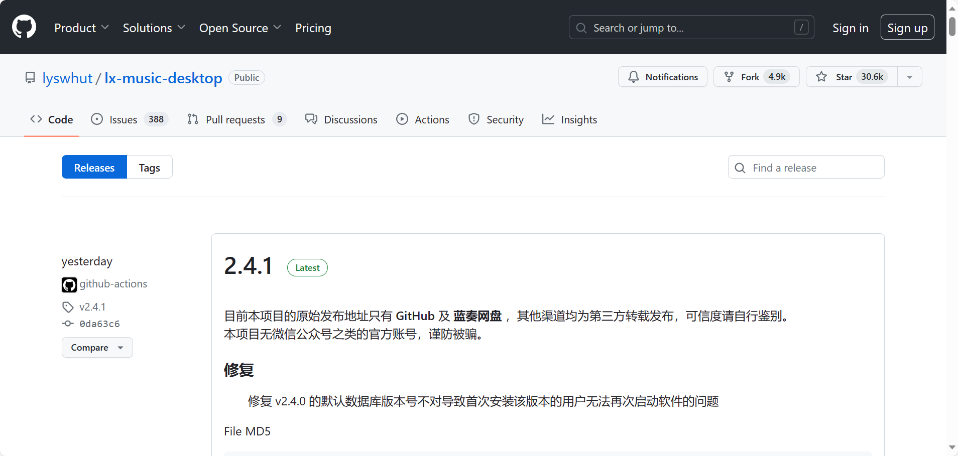 官网的最新版本一般发布在github上,自动更新失败可手动下载
