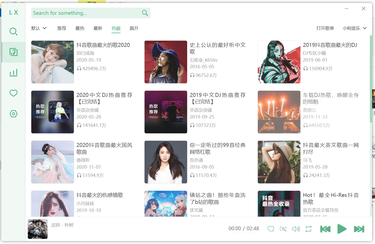 小小的推荐一下LX Music这个工具,免费查找音乐资源(覆盖QQ、网易云、酷狗、酷我等多个音乐平台资源),目前支持在Windows、Mac OS、Linux、Android平台上运行(可惜IOS运行不了)。LX Music目前是我电脑和手机上的听歌主力软件,功能十分强大,完全免费无广告,白嫖党的福音。