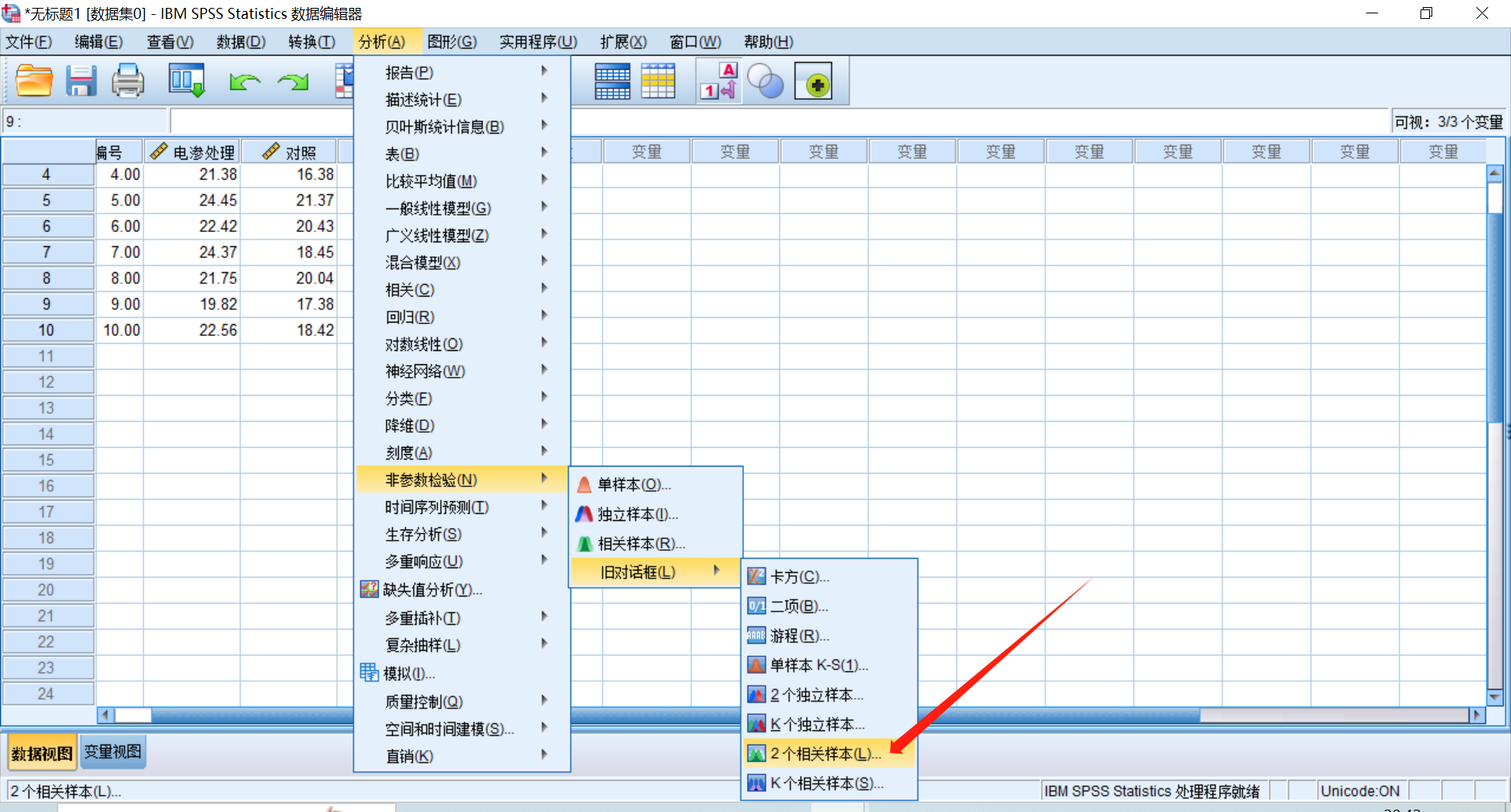 具体操作请参考做配对样本T检验时,两组数据相关不显著怎么处理?和SPSS配对样本T检验步骤及结果分析(成对样本T检验)