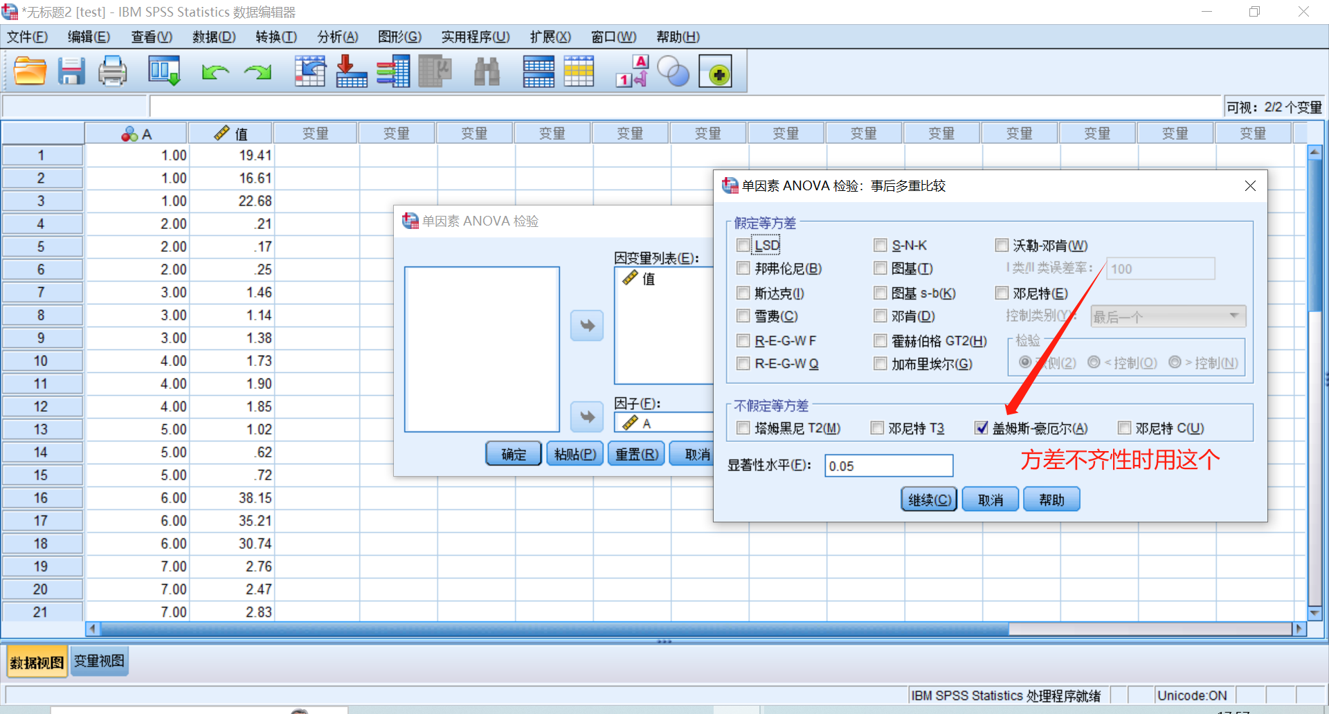 注:等重复和不等重复的单因素方差分析操作步骤相同