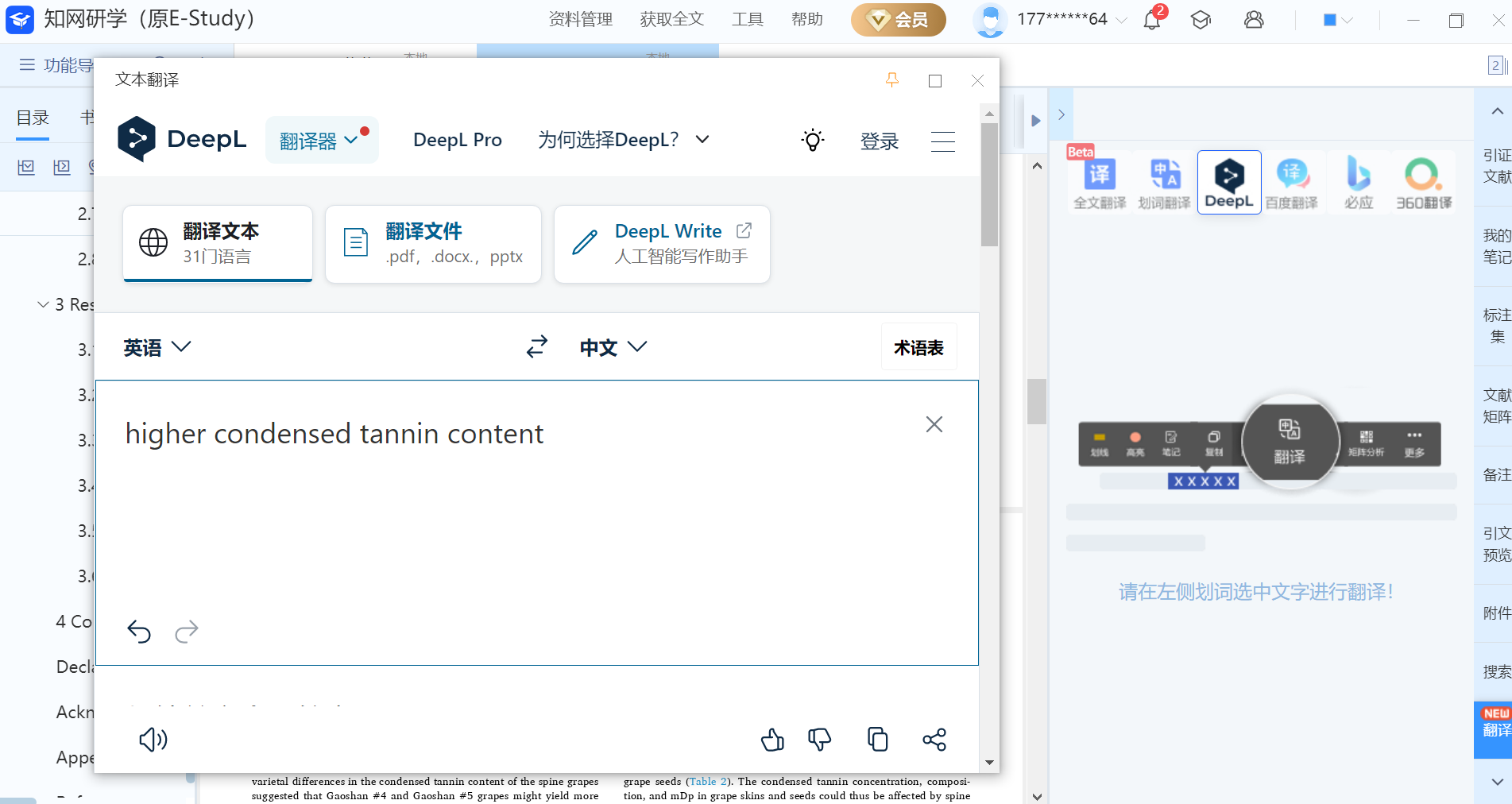 翻译功能不好用,划线翻译需要会员,只能窗口翻译了,但支持全文翻译(内测暂不收费,效果不好)
